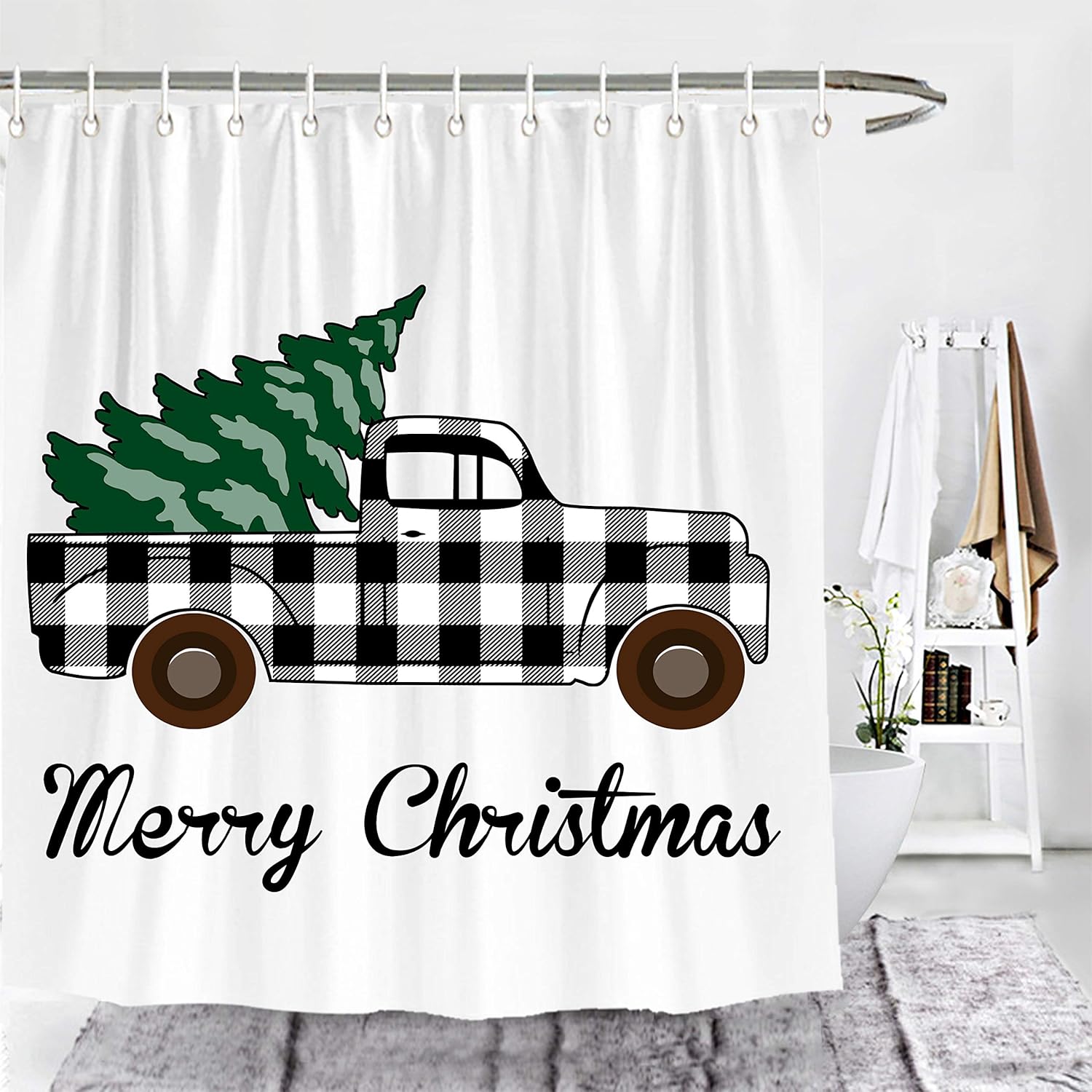 Amazon Com Wencal Merry Christmas Buffalo Check Plaid Truck With Tree Shower Curtain Farmhouse Bathroom Decor With Hooks Black White 72 X72 Inches Kitchen Dining - Learn more about amazon prime.